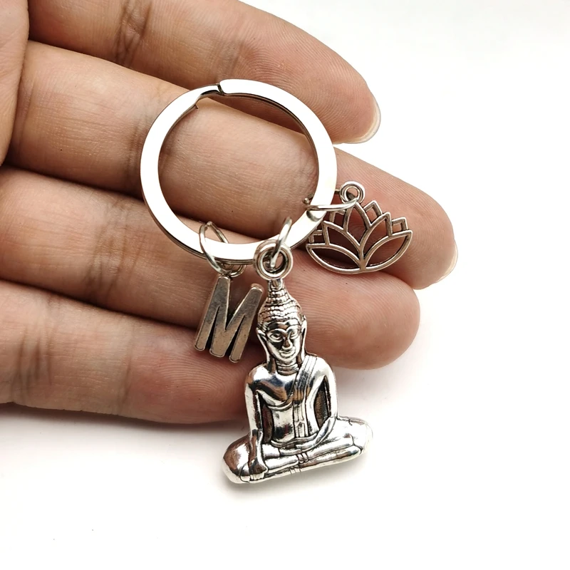 Name: LLavero de Buda con letras, flor de loto, langosta, Color plateado, Spiritu, regalo para amigos, hombres y mujeres, moda, novedad de 2020
