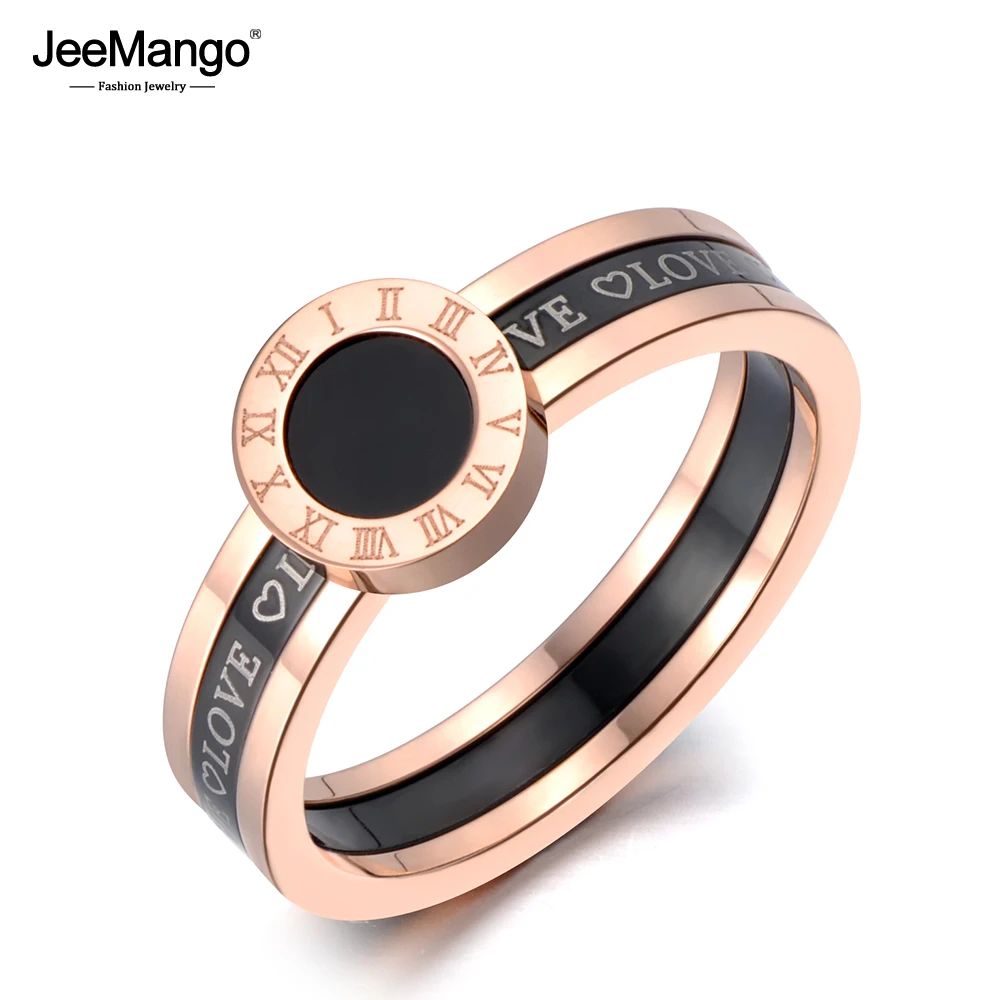 Name: JeeMango-anillos de boda con números romanos para mujer, joyas de acero inoxidable de titanio y oro rosa, joyería JR19060